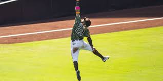 El jardinero dominicano Julio Rodríguez se luce en el jardín central de los Marineros.