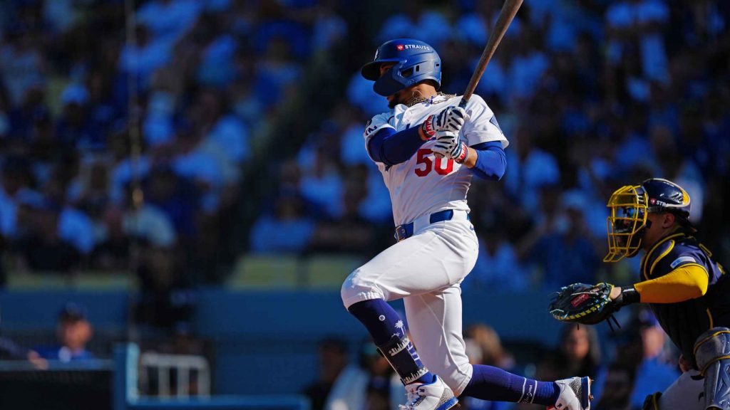La ofensiva de la escuadra de Los Angeles inició el juego con triple del japonés Shohei Ohtani, quien posteriormente pisó el plato por doblete remolcador de su compañero Mookie Betts frente al abridor de los Cerveceros Aaron Ashby. Ashby sólo trabajó un tercio de inning, siendo relevado por Jacob Misiorowski.