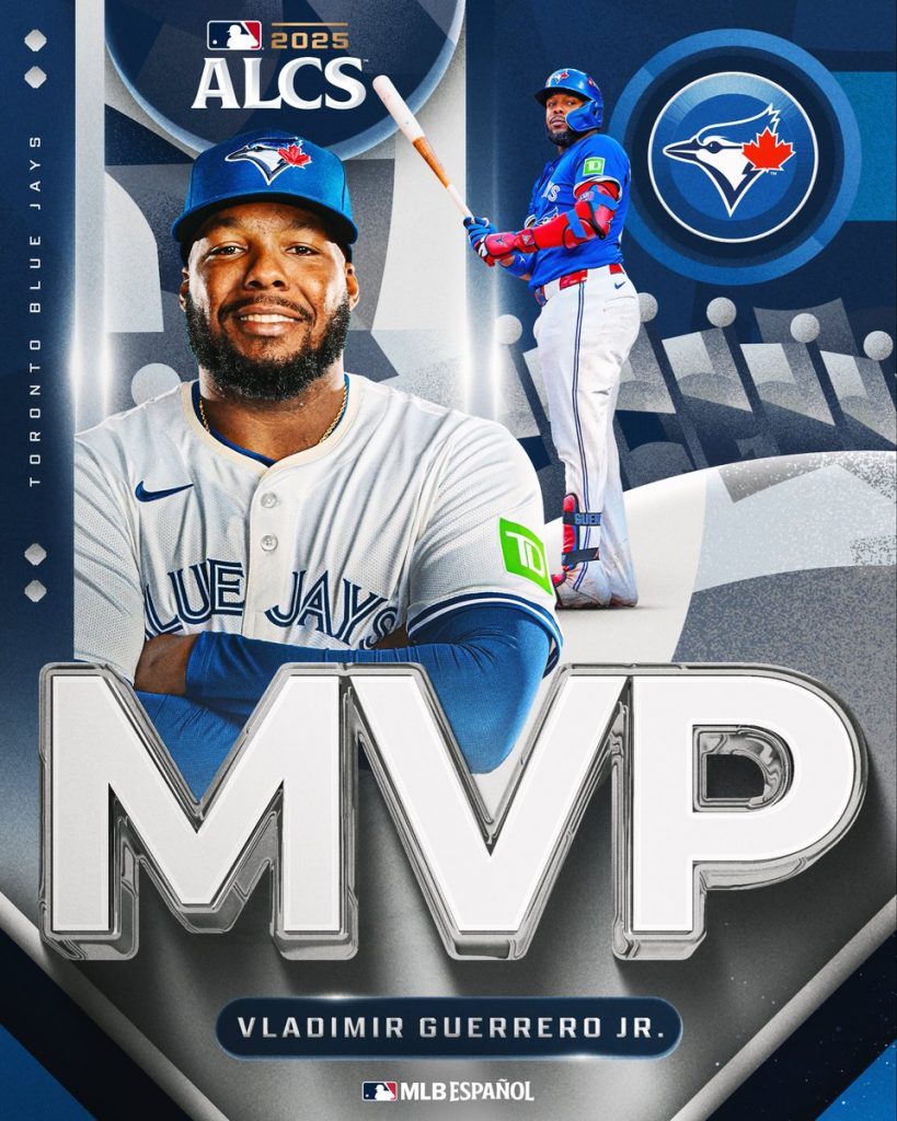 TORONTO, 20 de oct. de 2025.- Con 44,770 aficionados de pies, el inicialista dominicano Vladimir Guerrero Jr ha sido escogido el Jugador Más Valioso de la Serie de Campeonato de la Liga Americana, ganada por los Azulejos de Toronto para avanzar a la Serie Mundial por primera vez desde la temporada de 1993.