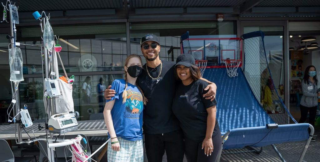 Mookie Betts y su esposa Brianna (centro) en la Fundación 5050.