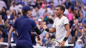 El italiano Jannik Sinner y el canadiense Felix Auger-Aliassime se estrechan las manos.