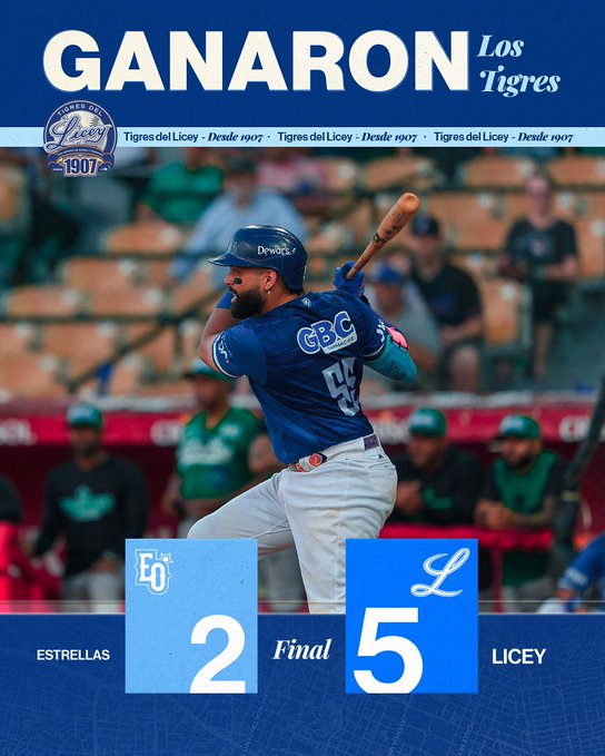 Por los Tigres, Mel Rojas Jr y Armando Alvarez contribuyeron con par de incogibles cada uno, mientras que De La Cruz bateó doble remolcador.