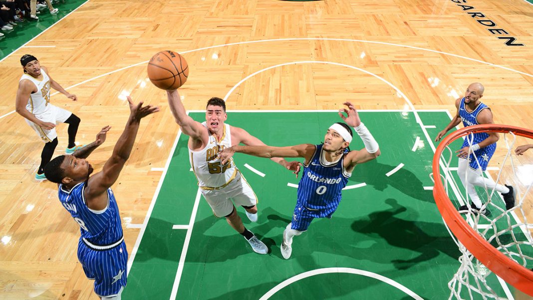 Principalmente gracias a Harper y Scheierman, los suplentes de Boston se mantuvieron cerca en el marcador al principio, llegando a estar abajo por una diferencia de dos dígitos a mediados del segundo cuarto y luego remontando gracias a una ráfaga de tiros de tres puntos (9 de 16) en el tercer cuarto para superar al Magic por 42-20 en ese período y abrir una ventaja de 94-81.