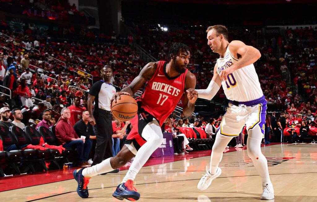 HOUSTON, EE.UU, 26 de abril del 2026.- Aunque con la inminente posibilidad de ser eliminados, jugar este domingo en su casa del Toyota Center se constituyó en una bujía inspiradora para los jugadores de los Rockets evitar que eso sucediera. Amen Thompson anotó 23 puntos y Tari Eason sumó 20 para liderar una aplastante victoria de Houston por 115-96 ante Los Lakers, en el cuarto compromiso de la serie de playoffs de la Conferencia Oeste.